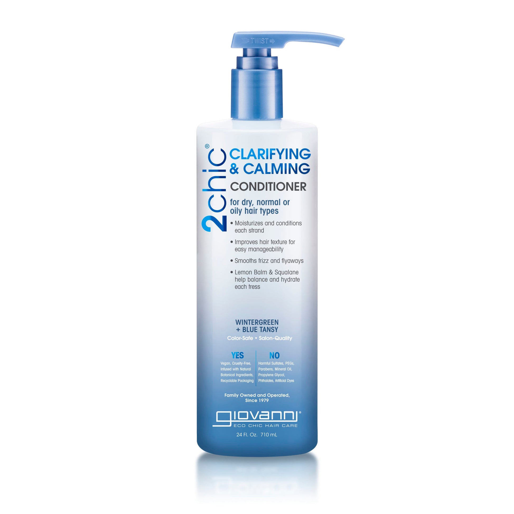 2chic® is to…bring out your hair’s natural beauty. With 2chic® Clarifying & Calming Conditioner, you can soften, balance, and calm each tress with our exclusive Dual Purifying Complex consisting of refreshing Wintergreen and Blue Tansy to help smooth hair and scalp of irritation while naturally helping to alleviate a dry, flaky scalp. Gently condition and wrap each tress with antioxidants. Powerful Lemon Balm helps reduce excess oils, creating a beautiful luster. The intense hydration of Squalane Oil sweeps over your tresses to help protect and prevent breakage for a healthy-looking shine…just in time.