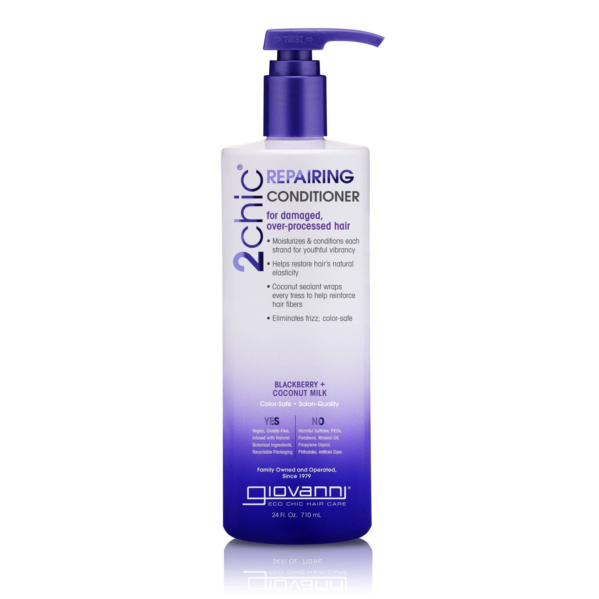 2chic® is to...repair and rejuvenate. Gorgeously restore vibrancy and help repair open cuticles that cause frizz and flyaways with our exclusive Dual Repairing Complex, an essential blend of Blackberries and Coconut Milk bursting with antioxidant power. This paraben-free conditioner helps repair damage and smooth each strand by indulging hair with moisture for a revitalized and beautiful shine. Giovanni® 2chic® Repairing Conditioner is powered by botanical extracts and oils with nourishing and restorative properties that balance pH levels in weak, thin, or damaged hair. Shea Butter, Keratin, and Jojoba are added to regain that luxurious appearance and softness once again. 2chic® Repairing is your complete hair care line for tresses that look as flawless as they feel.