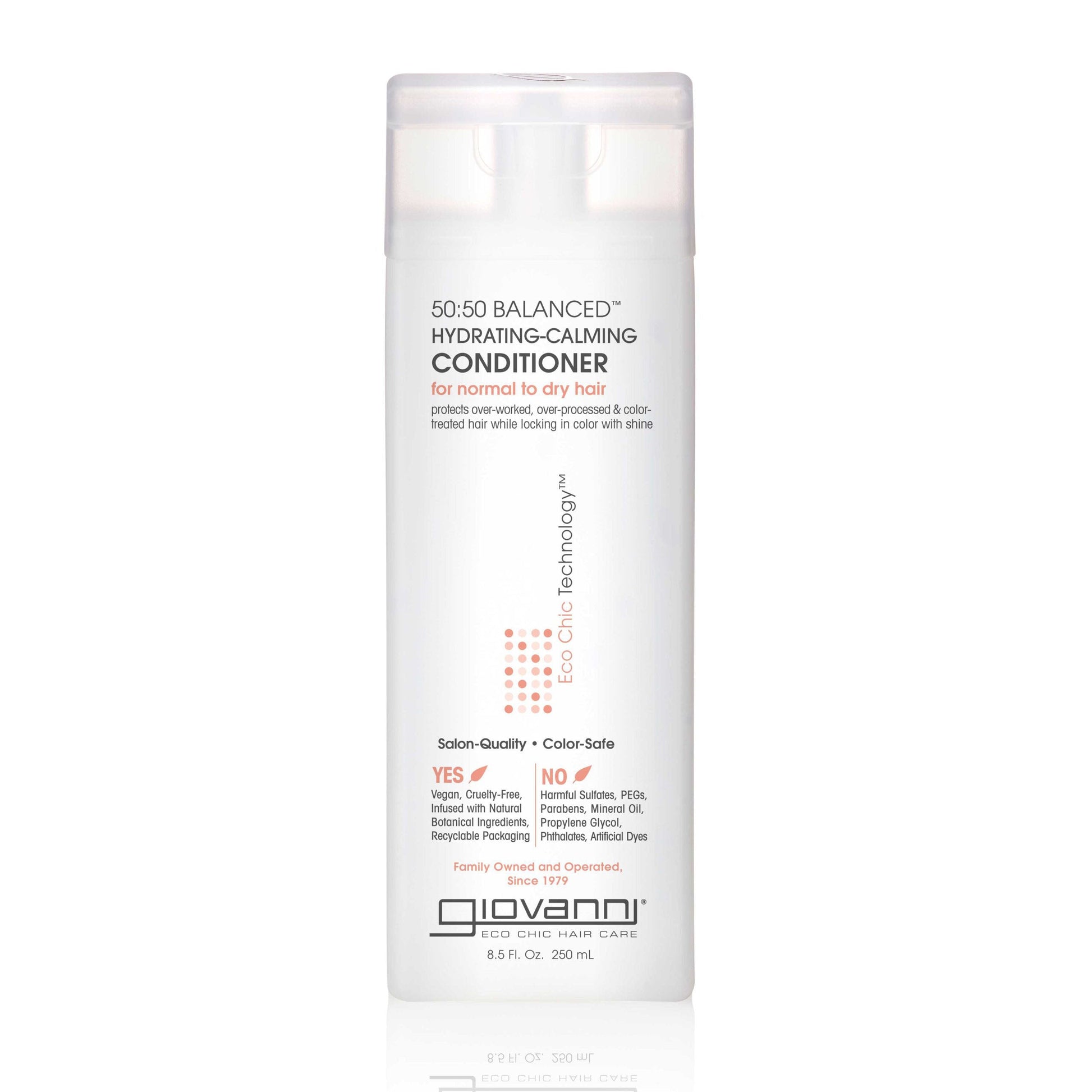 Giovanni®’s 50:50 BALANCED™ calming conditioner will not dull, strip color, or damage your hair. It’s 100% color-safe, paraben-free, and cruelty-free. Look in the Ingredients tab for a listing of (*) organically produced ingredients.