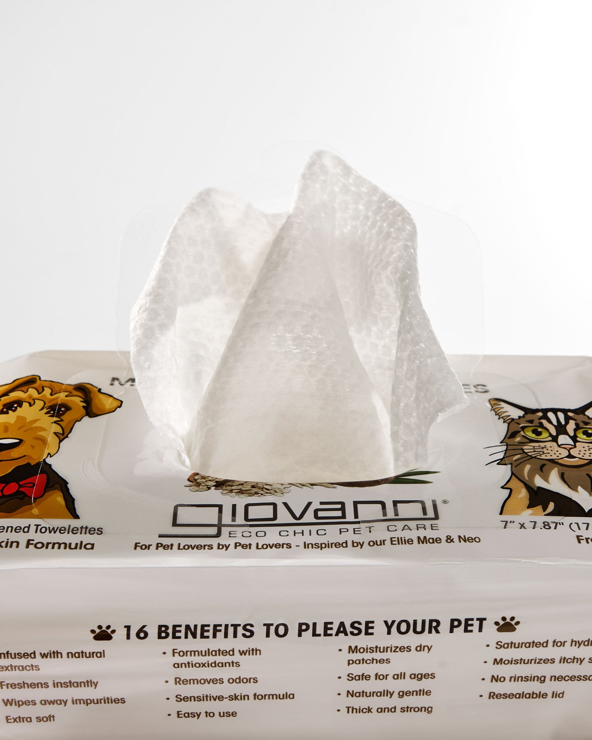 When your pet is ruff around the edges and needs a quick cleanup, touch up your pure-bred, mutt or holy terrier with Giovanni®'s Multipurpose Pet Wipes to keep your furry friend looking pawfessional. Leaves pets feeling so clean and shiny that even the paparazzi will roll over.