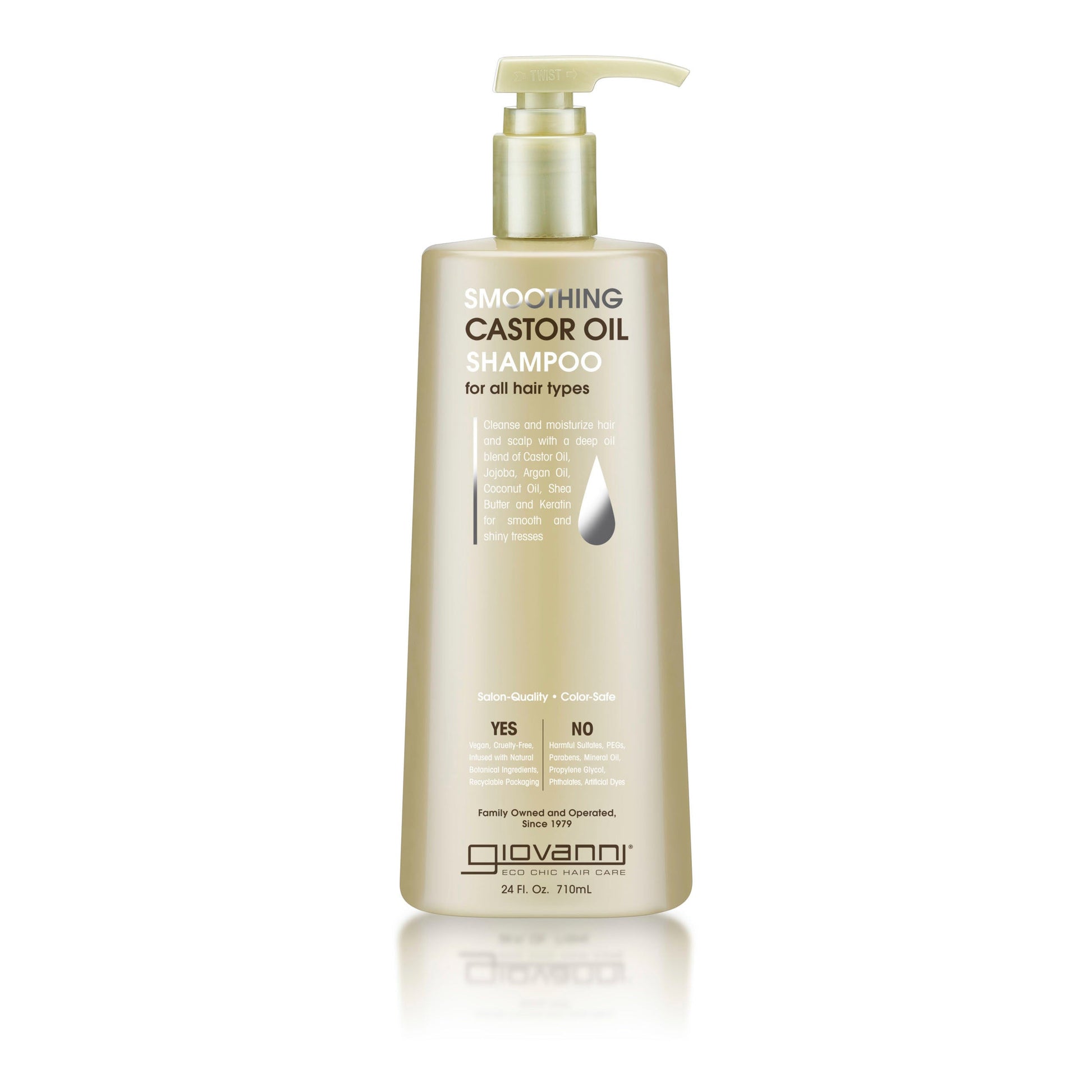 With this Smoothing Castor Oil Shampoo, Giovanni® has secretly formulated the best frizz-taming remedy on the planet, so it’s now time to be rid of that frizz. Clarify and revitalize hair and scalp with Giovanni®’s daily regimen that includes 100% pure Castor Oil. Intensely hydrate and smooth dry, damaged, or normal hair types with our exclusive blend for the ultimate in hair protection and manageability. A shiny, professional, smooth look for beautiful, healthy-looking tresses, every time.